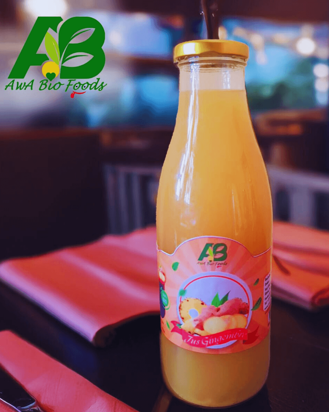 Le Jus Gingembre-Ananas Awa Bio Foods est une boisson artisanale élaborée à partir de racines de gingembre fraîchement pressées et de morceaux d’ananas soigneusement sélectionnés. Cette alliance parfaite entre piquant et douceur donne naissance à un jus vivifiant, au goût fruité intense et à l’arrière-goût épicé caractéristique du gingembre.