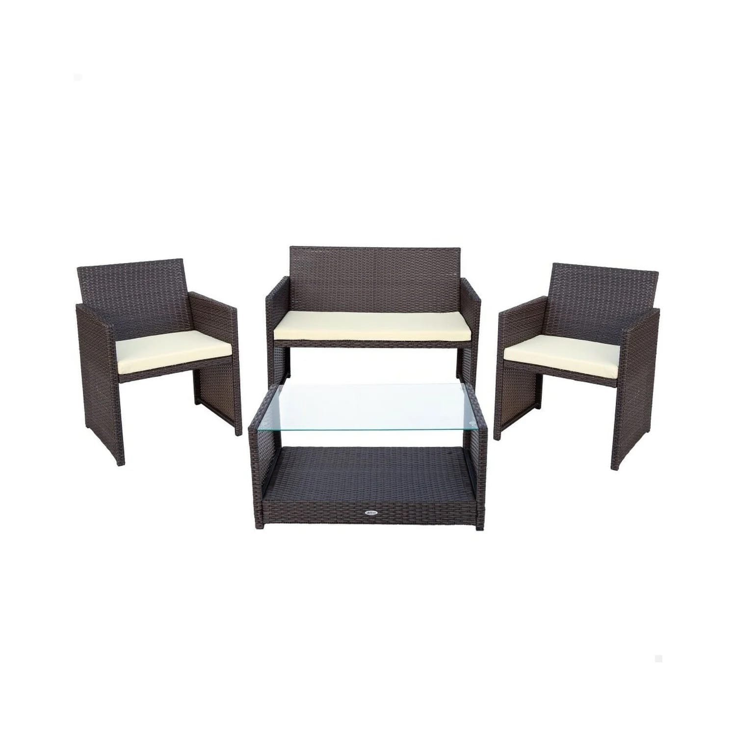 AKTIVE – Ensemble de meubles de terrasse en rotin synthétique avec 1 canapé, 2 fauteuils et 1 table – modèle 2