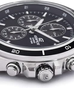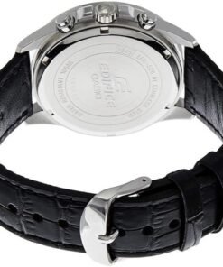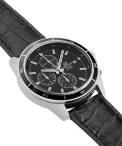 Cette montre chronographe de la collection Edifice incarne le parfait équilibre entre style sportif et sophistication. Son cadran noir profond avec sous-cadrans chronos, boîtier en acier poli et bracelet cuir façon crocodile en font un choix élégant pour les amateurs de précision et de classe.