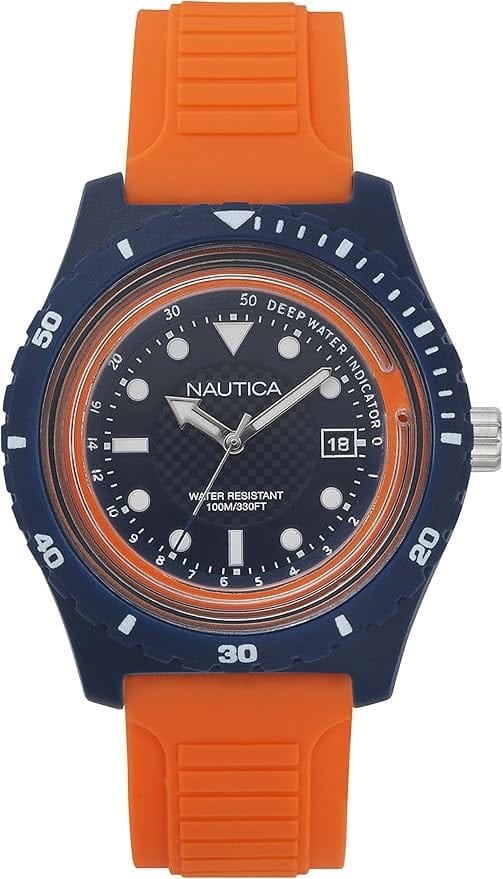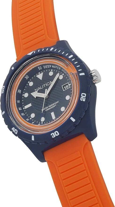 Un design audacieux pour ceux qui aiment se démarquer. Avec son bracelet orange vif et son boîtier bleu marine, la Nautica NAPIBZ004 offre un contraste dynamique et un style ultra-moderne. Conçue pour résister à l’eau jusqu’à 100 mètres, elle allie fonctionnalité et esthétique sportive. Le cadran noir, structuré avec précision, affiche une lisibilité optimale. Pensée pour l’homme urbain actif, cette montre se porte aussi bien en ville qu’en pleine nature. Son format 46 mm donne une vraie présence sans alourdir le poignet.