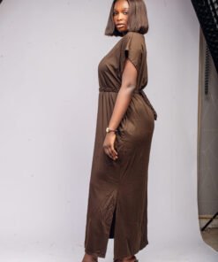 Découvrez notre robe longue marron à la coupe fluide, parfaite pour allier élégance et confort au quotidien. Sa ceinture tressée ton sur ton marque subtilement la taille, tandis que ses manches courtes et sa fente latérale apportent aisance et modernité. Un modèle polyvalent, idéal pour un look chic en toute simplicité.