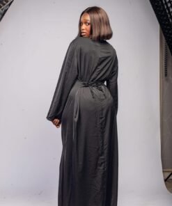 Robe longue noire élégante et fluide à nouer à l’arrière